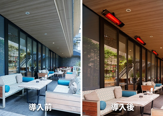 導入されたホテルでは冬場に利用客の少なかったレストランのテラス席の稼働率が上がり、お客様の満足度が飛躍的に向上したと効果を実感する声が届いています。