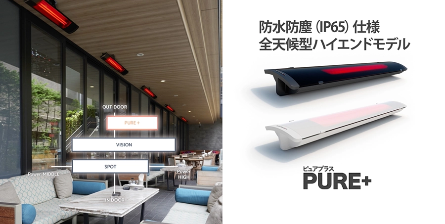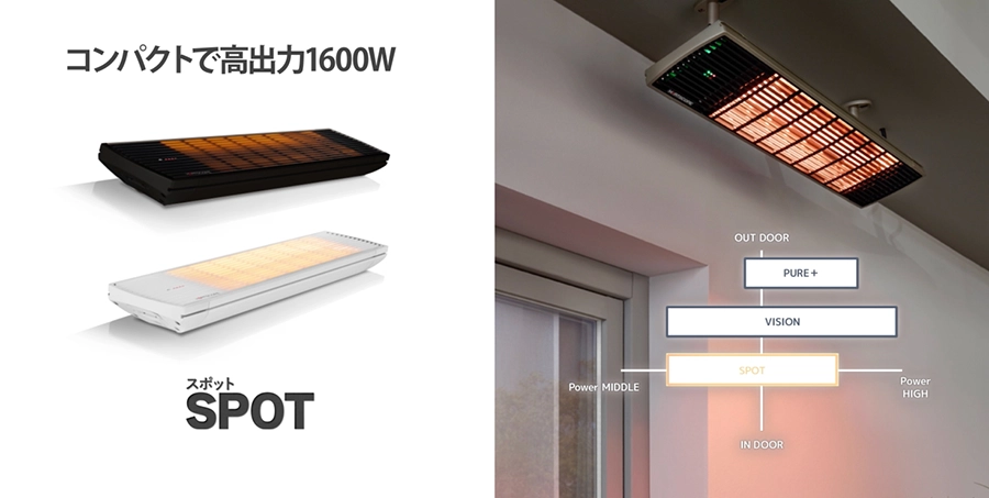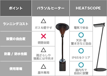 パラソルヒーターと比較して省スペースでランニングコストを抑えて運用することが可能です。